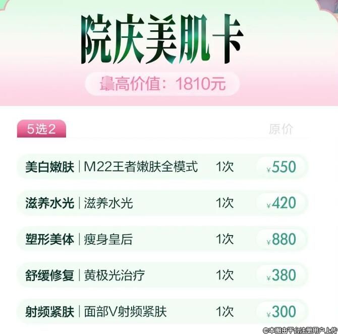 深圳博愛曙光整形33周年院慶 美肌卡5選2+2選1套餐組合