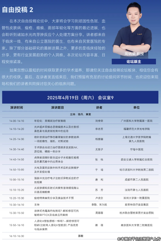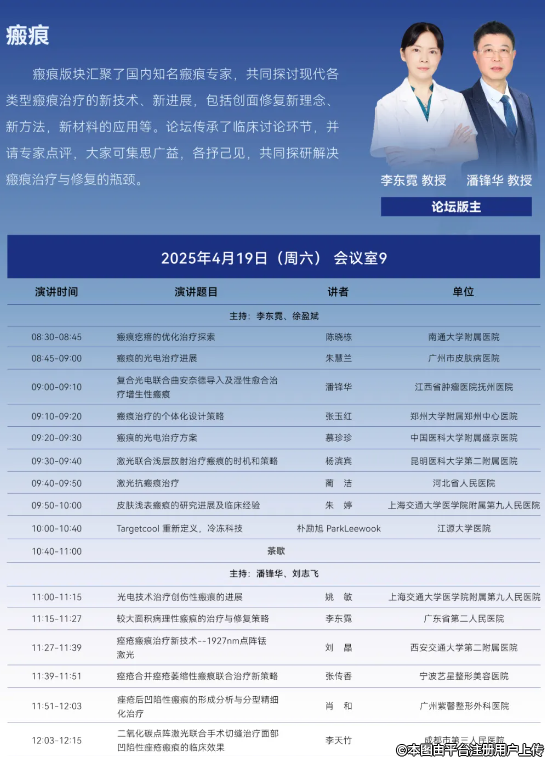 由中國醫(yī)師協(xié)會、中國醫(yī)師協(xié)會美容與整形醫(yī)師分會主辦,復旦大學附屬華山醫(yī)院、中國人民解放軍總醫(yī)院第七醫(yī)學中心承辦的中國醫(yī)師協(xié)會美容與整形醫(yī)師分會第十三屆全國激光美容與面部年輕化學術大會,將于2025年4月17日至4月20日在上海富悅大酒店璀璨啟幕。