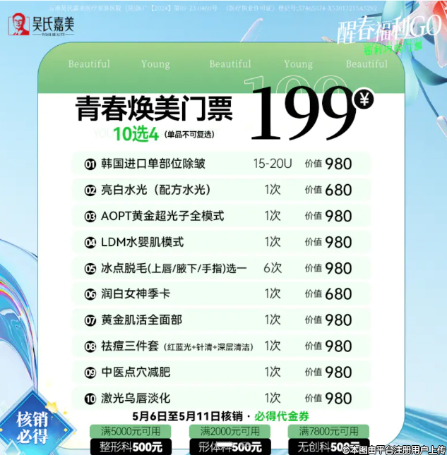 昆明吳氏嘉美醒春福利GO 福利內(nèi)購門票