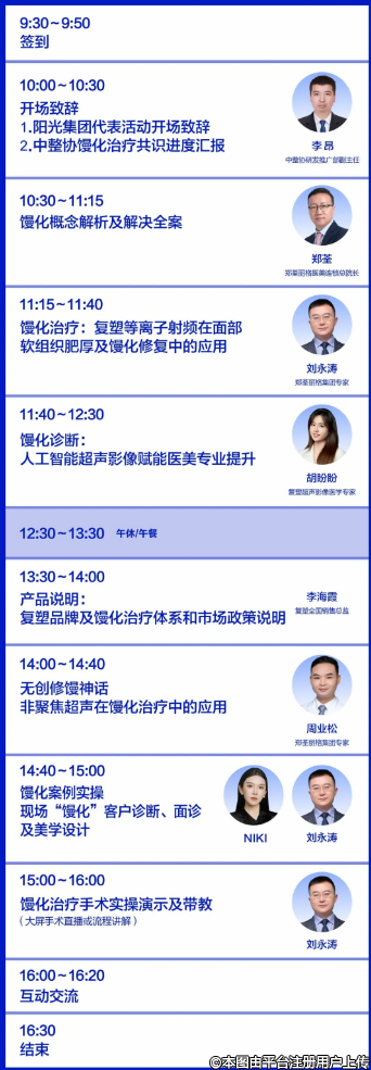 最新技術:鄭荃麗格集團專家劉永濤將分享“復塑等離子射頻在面部軟組織肥厚及饅化修復中的應用”。