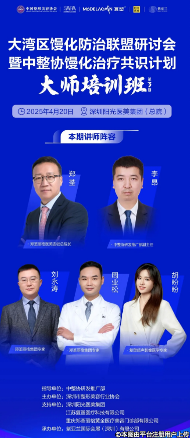 在醫(yī)美技術飛速發(fā)展的今天,“饅化”現(xiàn)象已成為行業(yè)內的一個關鍵挑戰(zhàn)。我們誠摯邀請您參加由中整協(xié)研發(fā)推廣中心指導,深圳整形美容行業(yè)協(xié)會主辦,深圳陽光醫(yī)美集團、重慶鄭荃麗格醫(yī)美連鎖總院支持,紫亞蘭國際會展(深圳)有限公司承辦的“大灣區(qū)饅化防治聯(lián)盟研討會暨中整協(xié)饅化治療共識計劃大師培訓班(第三期)”。