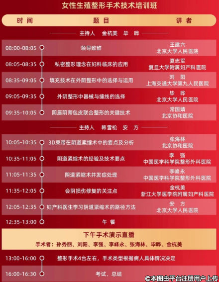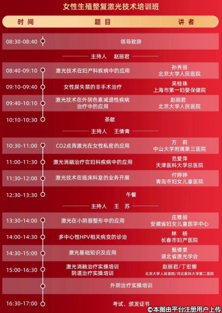 作為女性生殖整復年度學術盛會,將始終以重學術、高質量、創(chuàng)品牌的理念為目的,帶來新信息和新技術應用的結果。大會將邀請國際、國內(nèi)資深的專家做專題報告和手術演示,設置4個主題,女性生殖整復激光技術;生殖整復物理技術,生殖整復微創(chuàng)治療;生殖整形手術論壇,并就每個主題做深度討論及分享。會議采用學術交流的形式,應用多媒體演示、即時解惑答疑,充分討論等形式進行深入淺出的交流。相信今年的研討會將更加精彩紛呈,給大家?guī)硪粓鲼褜W術盛宴。
