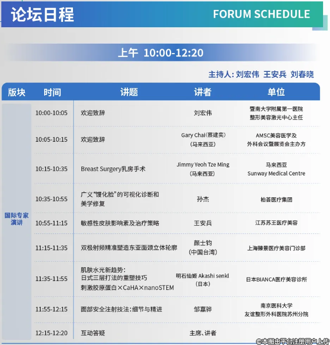行業(yè)知名專家將齊聚一堂,與來自美國、加拿大荷蘭、日本、韓國、新加坡、馬來西亞、菲律賓等國專家圍繞醫(yī)美前沿技術(shù)和產(chǎn)業(yè)展開深度對話。大會組織者還將呈現(xiàn)創(chuàng)新模式,為與會者提供前所未有的學習與成長機遇。