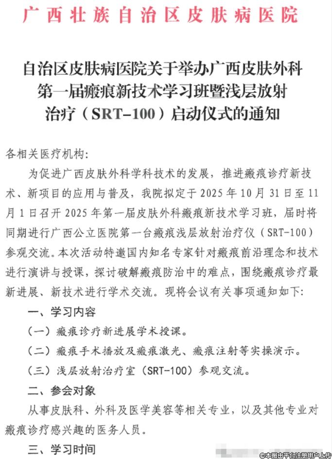 廣西第一屆瘢痕新技術(shù)學(xué)習(xí)班暨淺層放射治療系統(tǒng)(SRT-100)即將啟動(dòng) |會(huì)議通知