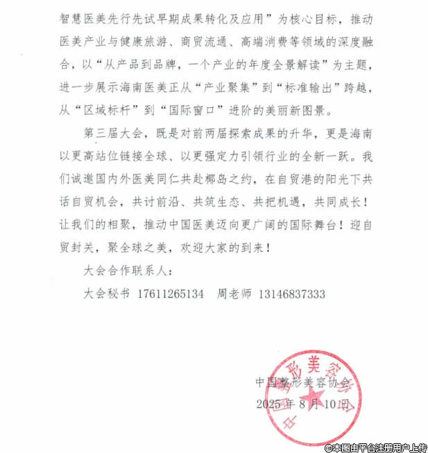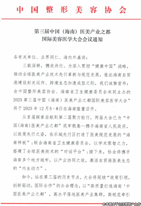 本次大會由中國整形美容協(xié)會、海南省衛(wèi)生健康委員會共同主辦。本次大會以“共享封關(guān)紅利,共創(chuàng)醫(yī)美未來”為主題,設(shè)立30多場論壇,旨在全方位探討海南封關(guān)紅利為醫(yī)美產(chǎn)業(yè)帶來的巨大時代機(jī)遇。