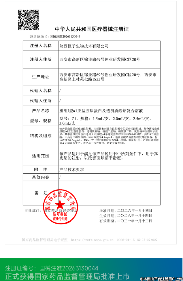 全球首個(gè)丨注射用重組膠原蛋白和透明質(zhì)酸鈉復(fù)合溶液獲批