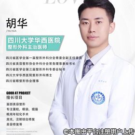 #胡華就職醫(yī)院: 四川大學(xué)華西醫(yī)院整形職稱職務(wù): 執(zhí)業(yè)醫(yī)師擅長項(xiàng)目: 面部美容整形(重瞼、眼袋、提眉)、眼周年輕化手術(shù)(激光、注射綜合)修復(fù)美容修復(fù)等