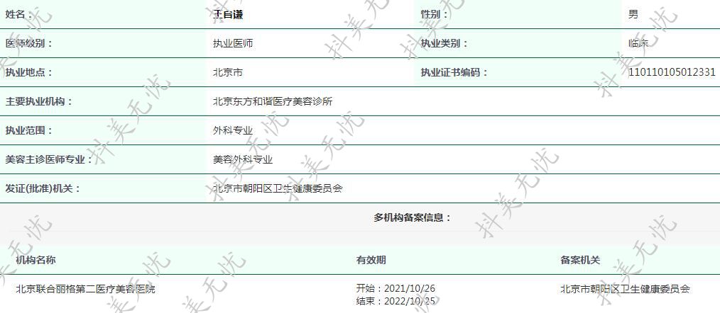 主要執(zhí)業(yè)機(jī)構(gòu):北京東方和諧醫(yī)療美容診所