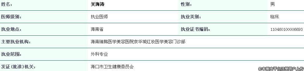 主要執(zhí)業(yè)機(jī)構(gòu):海南瑞韓醫(yī)學(xué)美容醫(yī)院京華城紅妝醫(yī)學(xué)美容門診部
