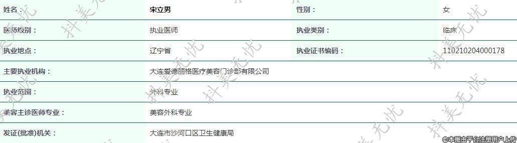 主要執(zhí)業(yè)機構:大連愛德麗格醫(yī)療美容門診部有限公司