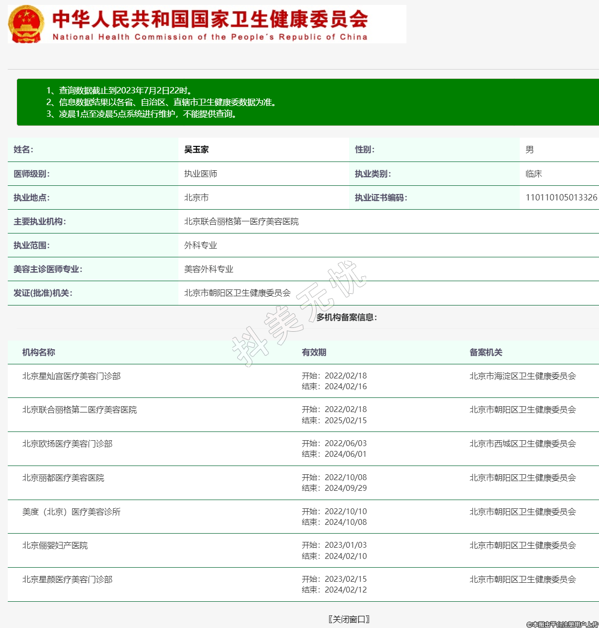 發(fā)證(批準)機關(guān):北京市朝陽區(qū)衛(wèi)生健康委員會