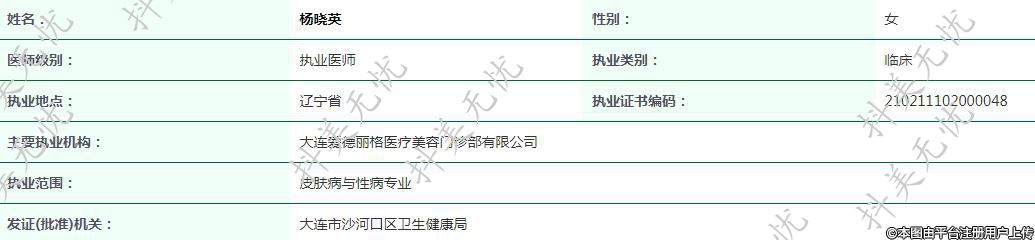 主要執(zhí)業(yè)機(jī)構(gòu):大連愛(ài)德麗格醫(yī)療美容門(mén)診部有限公司