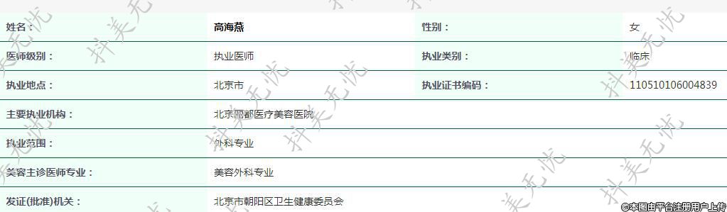 主要執(zhí)業(yè)機構(gòu):北京麗都醫(yī)療美容醫(yī)院