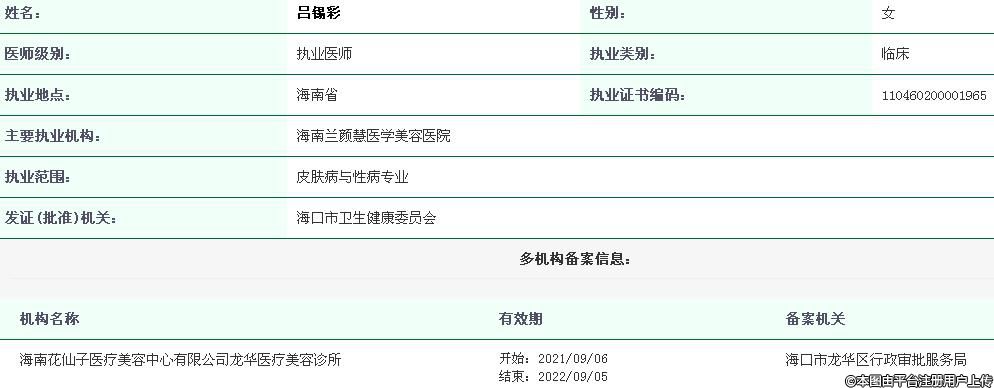 主要執(zhí)業(yè)機(jī)構(gòu):海南蘭顏慧醫(yī)學(xué)美容醫(yī)院