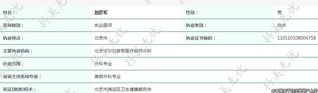 主要執(zhí)業(yè)機構(gòu):北京沃爾劉彥軍醫(yī)療美容診所