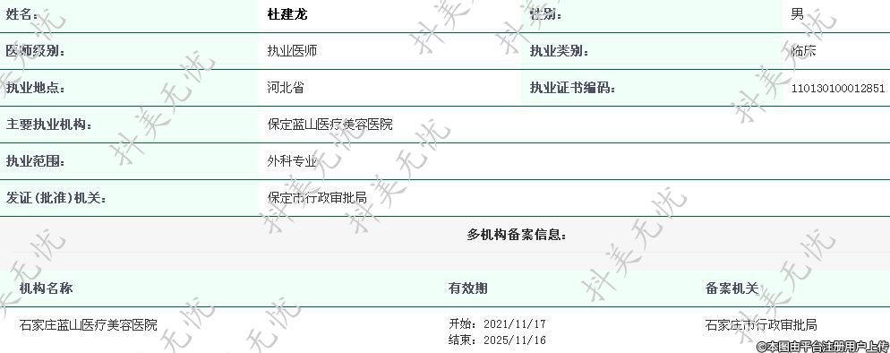 主要執(zhí)業(yè)機構(gòu):保定藍山醫(yī)療美容醫(yī)院