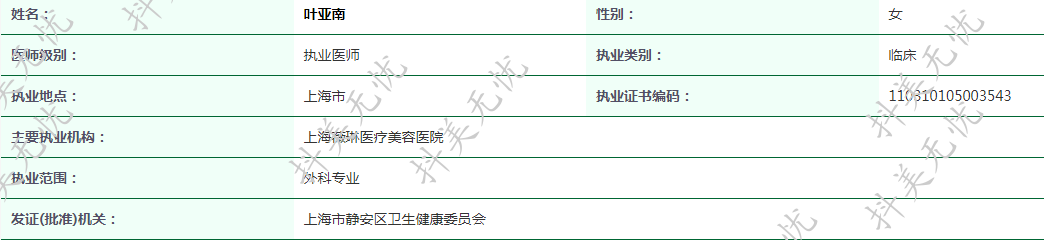 主要執(zhí)業(yè)機構(gòu):上海薇琳醫(yī)療美容醫(yī)院