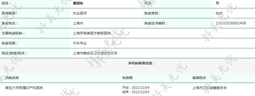主要執(zhí)業(yè)機(jī)構(gòu):上海伊萊美醫(yī)療美容醫(yī)院