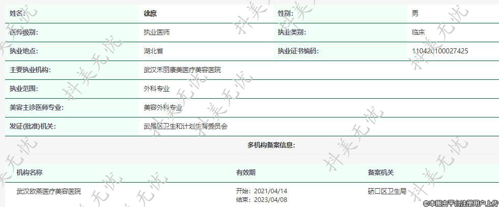 主要執(zhí)業(yè)機構:武漢禾麗康美醫(yī)療美容醫(yī)院