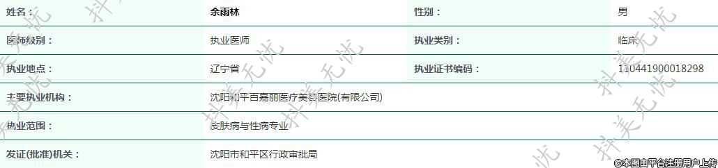 主要執(zhí)業(yè)機(jī)構(gòu):沈陽(yáng)和平百嘉麗醫(yī)療美容醫(yī)院(有限公司)