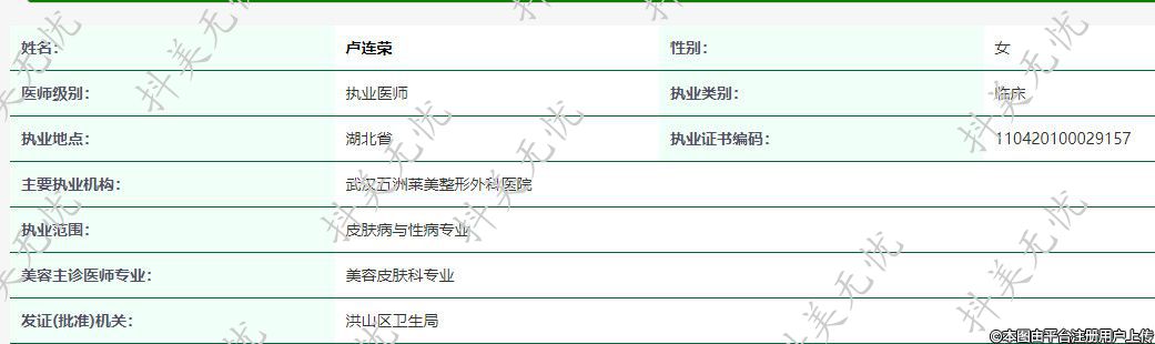 主要執(zhí)業(yè)機構:武漢五洲萊美整形外科醫(yī)院