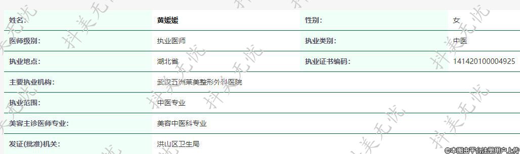 主要執(zhí)業(yè)機(jī)構(gòu):武漢五洲萊美整形外科醫(yī)院