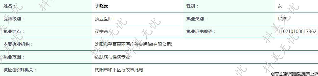 主要執(zhí)業(yè)機構(gòu):沈陽和平百嘉麗醫(yī)療美容醫(yī)院(有限公司)
