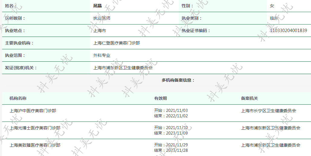主要執(zhí)業(yè)機構:上海仁登醫(yī)療美容門診部