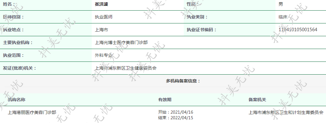 主要執(zhí)業(yè)機構(gòu):上海光博士醫(yī)療美容門診部