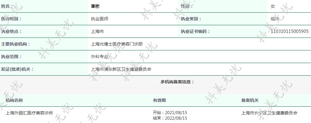 主要執(zhí)業(yè)機(jī)構(gòu):上海光博士醫(yī)療美容門診部