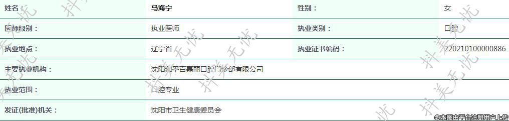 主要執(zhí)業(yè)機(jī)構(gòu):沈陽和平百嘉麗口腔門診部有限公司