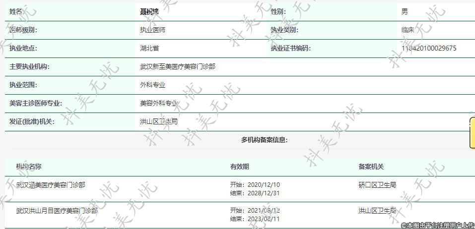 主要執(zhí)業(yè)機構:武漢新至美醫(yī)療美容門診部