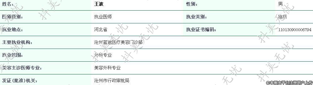 主要執(zhí)業(yè)機(jī)構(gòu):滄州藍(lán)途醫(yī)療美容門診部