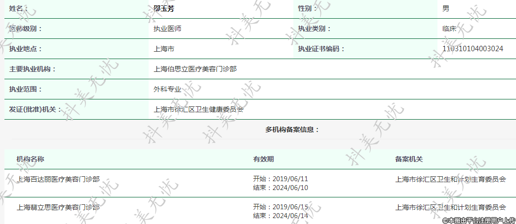 主要執(zhí)業(yè)機構(gòu):上海伯思立醫(yī)療美容門診部