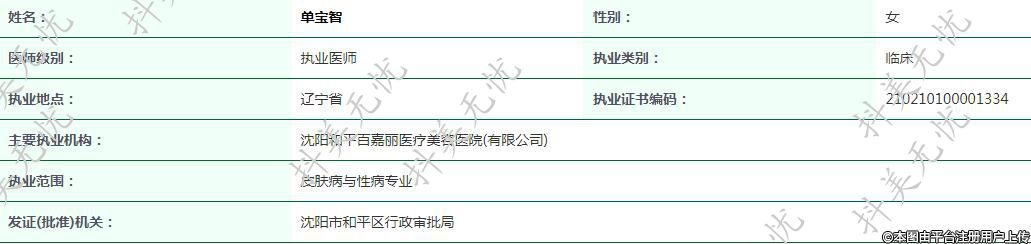主要執(zhí)業(yè)機(jī)構(gòu):沈陽(yáng)和平百嘉麗醫(yī)療美容醫(yī)院(有限公司)