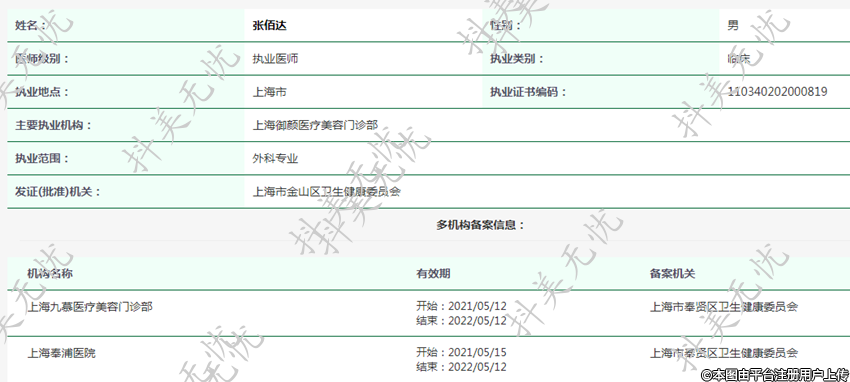 主要執(zhí)業(yè)機構(gòu):上海御顏醫(yī)療美容門診部