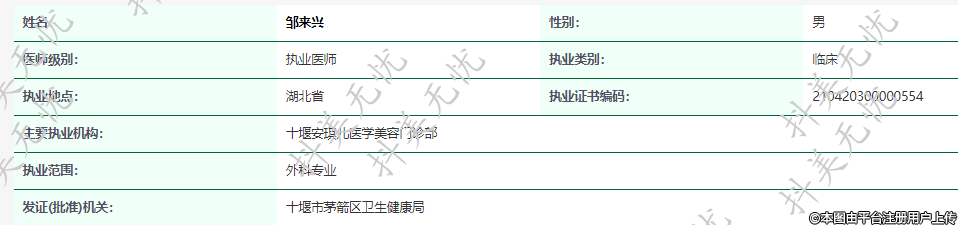 主要執(zhí)業(yè)機構:十堰安琪兒醫(yī)學美容門診部