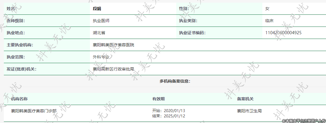 主要執(zhí)業(yè)機(jī)構(gòu):襄陽(yáng)韓美醫(yī)療美容醫(yī)院