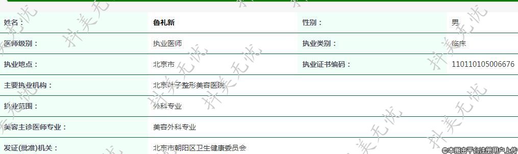 主要執(zhí)業(yè)機(jī)構(gòu):北京葉子整形美容醫(yī)院