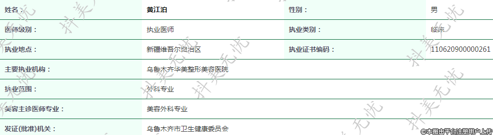 主要執(zhí)業(yè)機(jī)構(gòu):烏魯木齊華美整形美容醫(yī)院