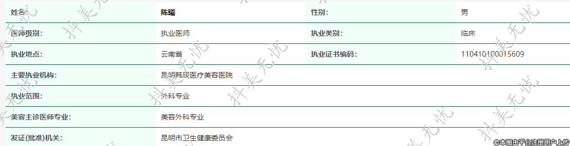 主要執(zhí)業(yè)機(jī)構(gòu):昆明韓辰醫(yī)療美容醫(yī)院