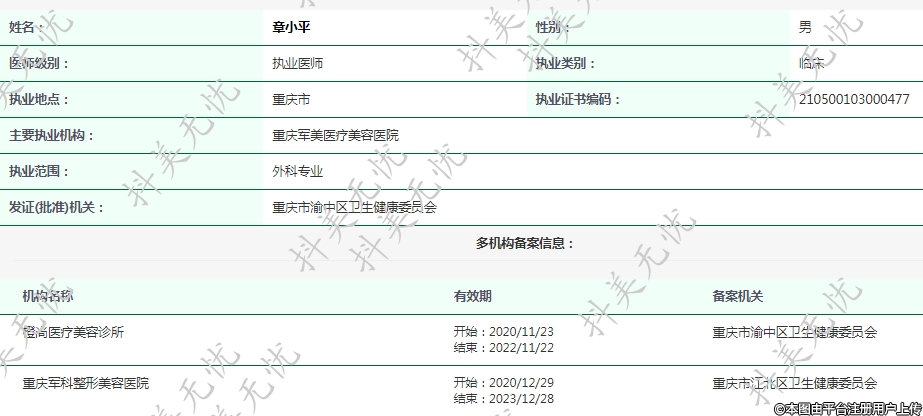 主要執(zhí)業(yè)機(jī)構(gòu):重慶軍美醫(yī)療美容醫(yī)院