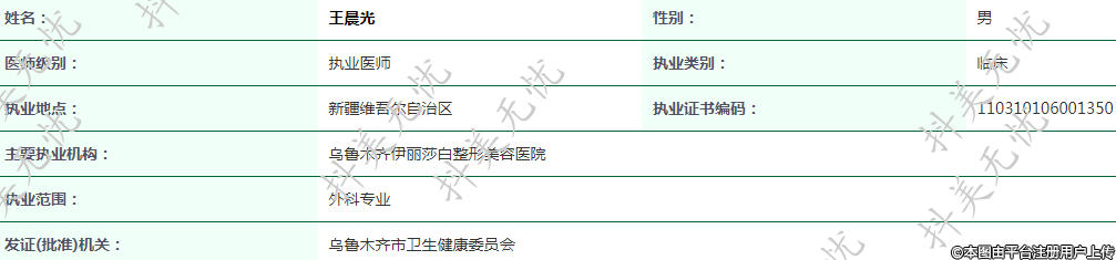 主要執(zhí)業(yè)機(jī)構(gòu):烏魯木齊伊麗莎白整形美容醫(yī)院