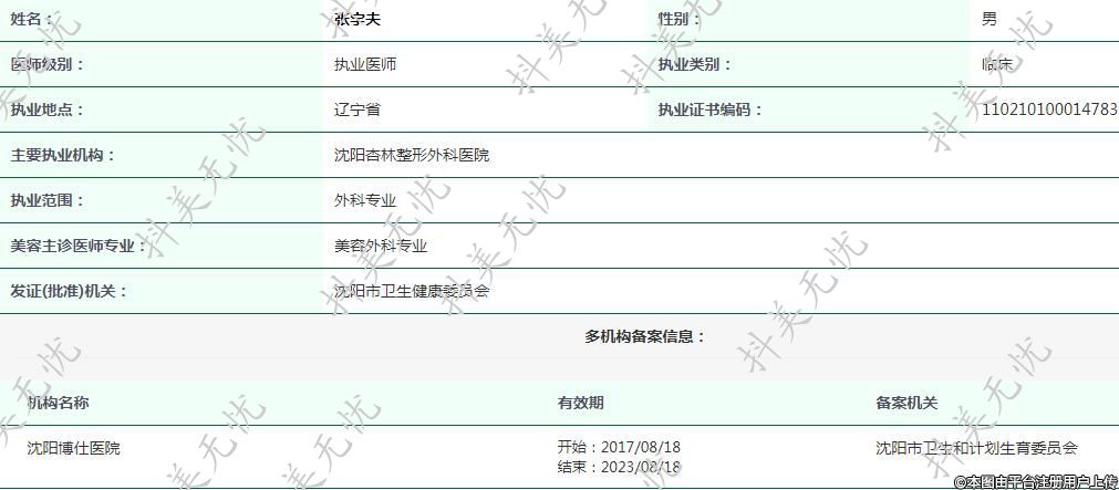 主要執(zhí)業(yè)機(jī)構(gòu):沈陽杏林整形外科醫(yī)院