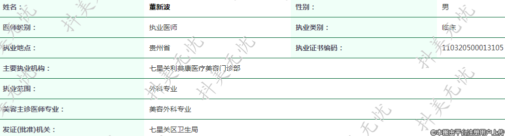 現(xiàn)就任畢節(jié)利美康醫(yī)療美容整形外科醫(yī)生 -