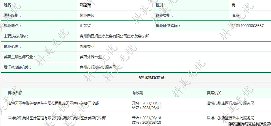 主要執(zhí)業(yè)機構(gòu):青州潤百妍醫(yī)療美容有限公司醫(yī)療美容診所