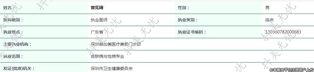 主要執(zhí)業(yè)機(jī)構(gòu):深圳美加美醫(yī)療美容門診部