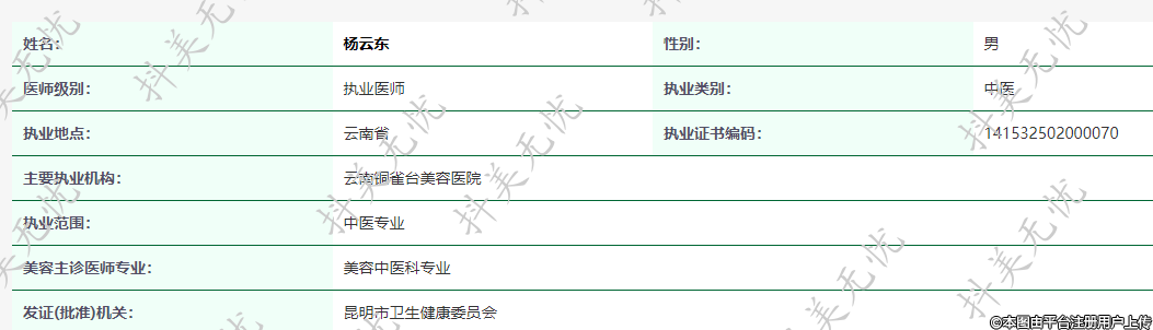 主要執(zhí)業(yè)機構(gòu):云南銅雀臺美容醫(yī)院