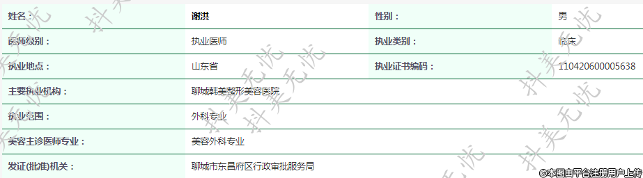 主要執(zhí)業(yè)機構(gòu):聊城韓美整形美容醫(yī)院