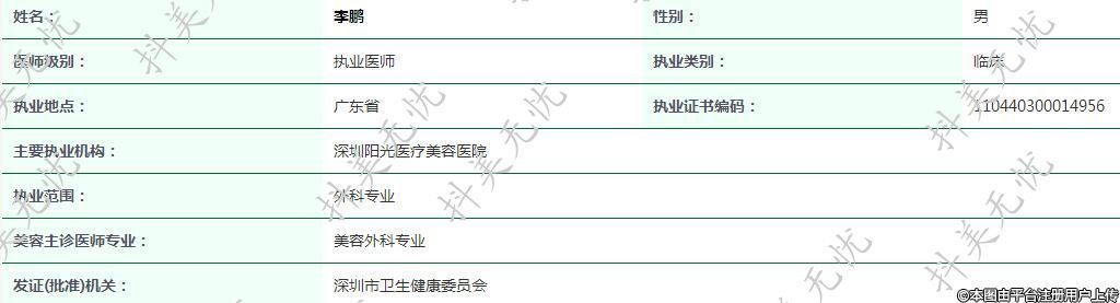 主要執(zhí)業(yè)機(jī)構(gòu): 深圳陽光醫(yī)療美容醫(yī)院